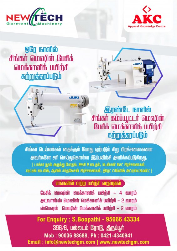 Apparel Knowledge Center is sewing machine mechanics training institute,