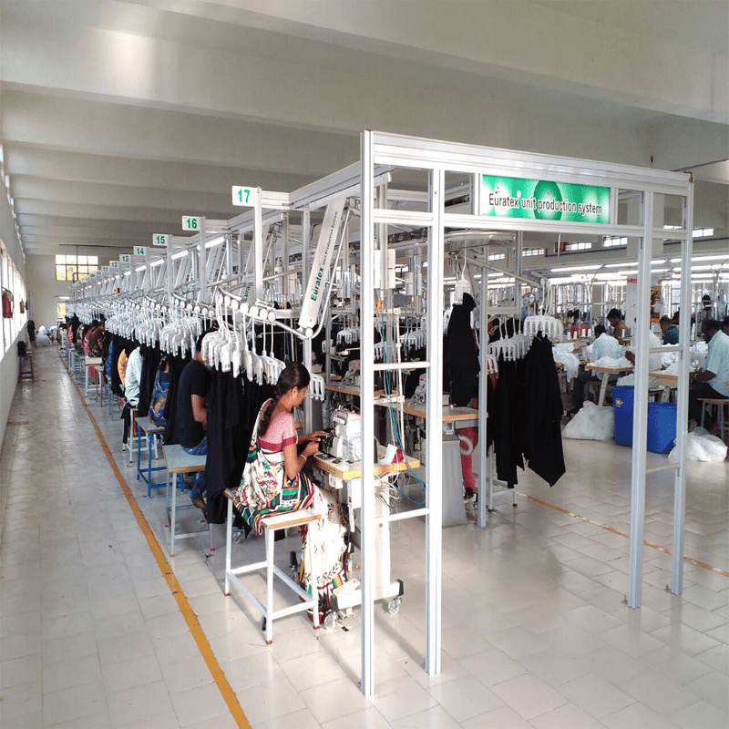 Brand: Euratex Product Name: Hanger System UPS Reduce production costs Increase productivity Increase operator efficiency Zero rejection in sewing Multi style running same time Back to Euratex